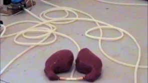 Seven pairs of cast silicone lungs are strewn across the exhibit space. They breathe at independent rates with the help of stepper motors and an air compressor.